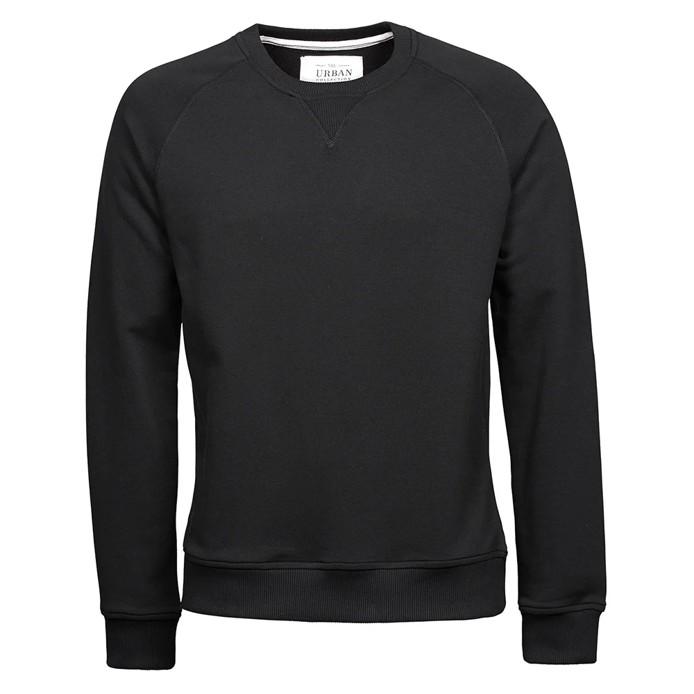 Sweat-shirt en coton égyptien à longues fibres, non brossé, avec col rond et manches raglan, « lavé aux enzymes » pour une surface plus douce et plus lisse, coupe moderne.