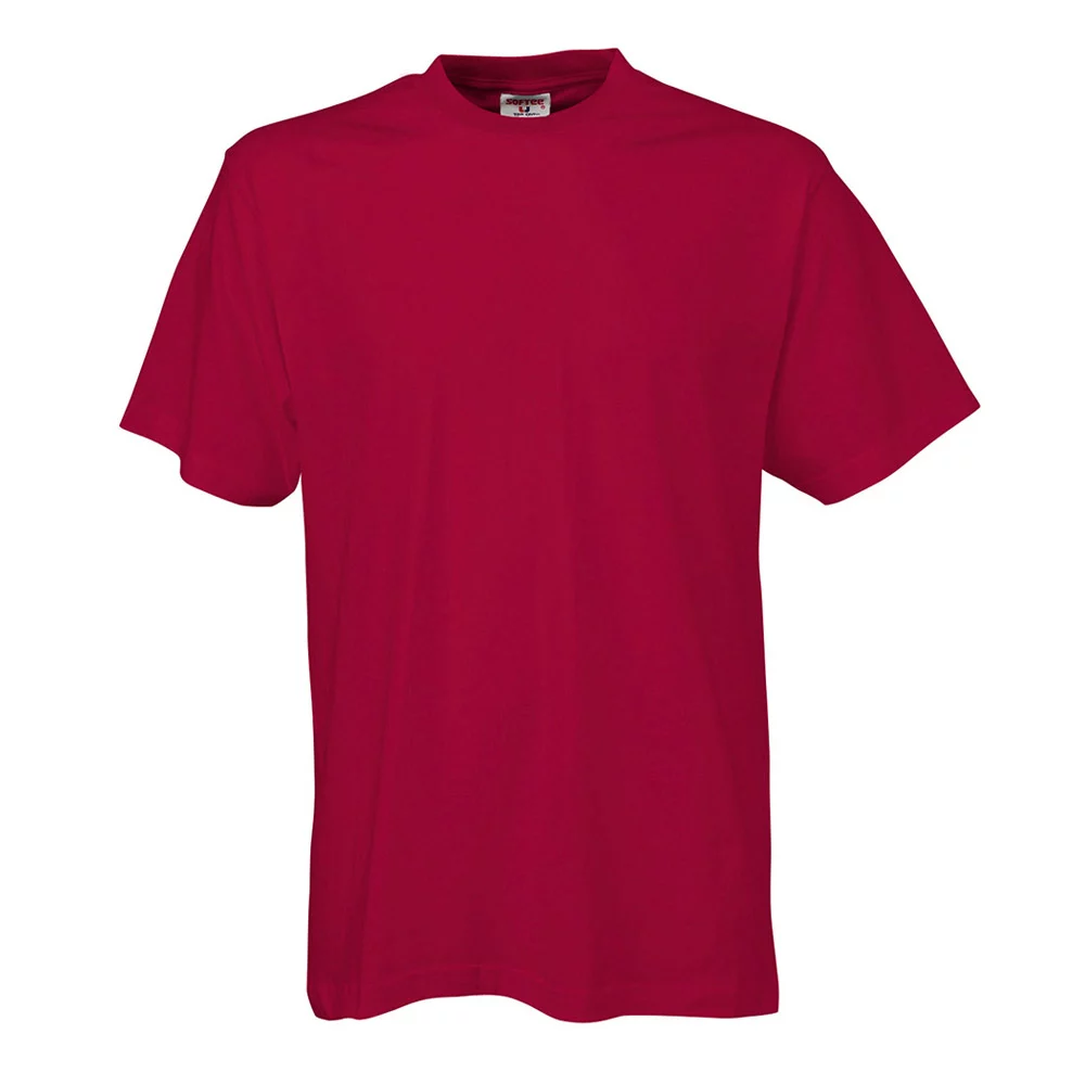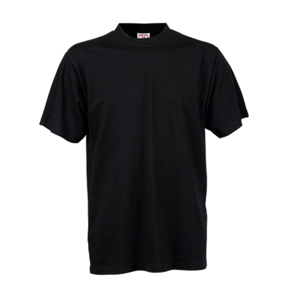 T-shirt classique à col rond, bande de col épaule à épaule, bande de col double épaisseur avec élasthanne, sans coutures latérales, prérétréci.