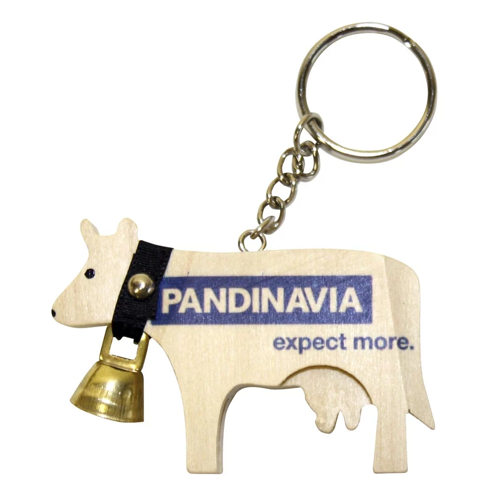 Swiss made, fait à la main en bois certifié célèbre vache avec tâches de couleur et cloche, très sympathique porte-clé !