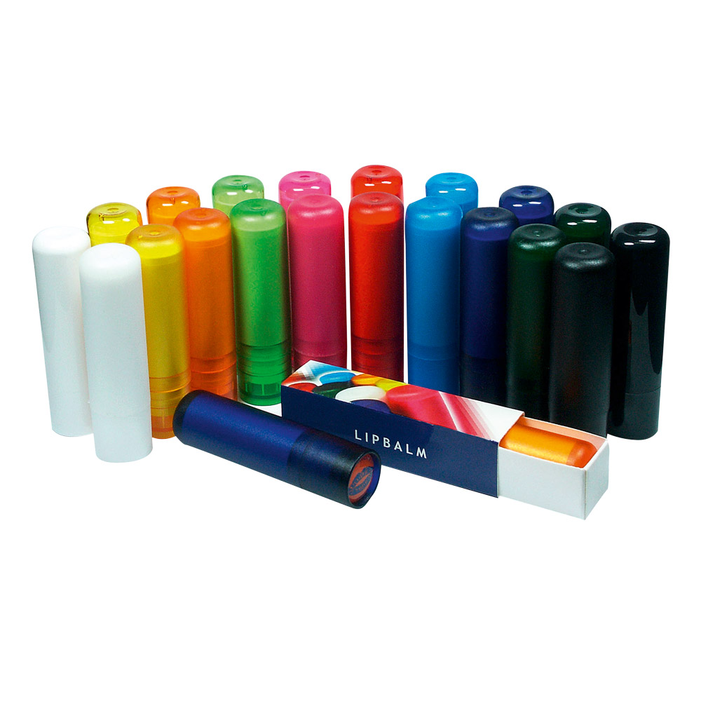 Baume à lèvres sous forme de tube en plastique avec effet givré tendance.