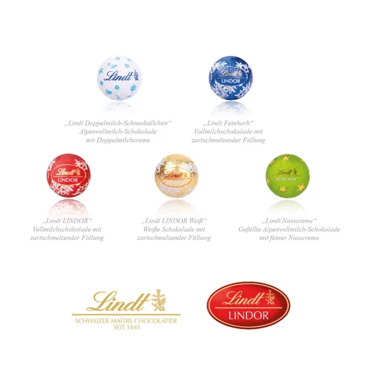 Le calendrier de l'Avent mural parfait, de qualité supérieure, rempli de 22 miniatures Lindt assorties et de deux figurines de Noël Lindt (env. 120 g), dans un emballage en carton plein au format portrait, avec trou de suspension et support de table, durée de conservation env. 6 mois