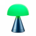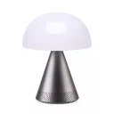 Lampe LED 2en1 noble et inductive en aluminium, avec 9 réglages de couleur LED différents et variables ainsi qu'un haut-parleur Bluetooth® 360° intégré, avec une autonomie de 24 heures et un temps de charge de 3 heures, résistante aux éclaboussures (IPX4), est livrée avec un câble USB-C.