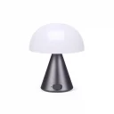 Lampe LED inductive stylée en aluminium, avec 9 réglages de couleur de LED variables, une autonomie de 24 heures ainsi qu'un temps de charge de 2 heures, résistante aux éclaboussures (IPX4), est livrée avec un câble USB-C.