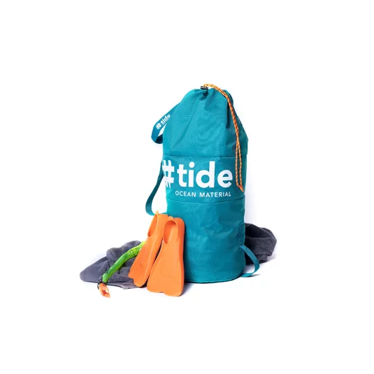 Pour la protection des océans - nous donnons une valeur aux déchets ! Petit, pratique, durable - sac en #tide ocean material® (100% PET recyclé) développé en Suisse, avec fermeture en corde d'escalade, capacité 60 l.