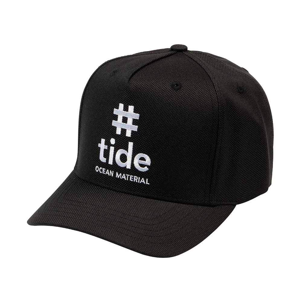 Pour la protection des mers, nous valorisons les déchets ! Casquette tendance et durable en #tide Ocean Material® développé en Suisse (PET 100% recyclé), avec 6 panneaux et fermeture réglable, quantité minimum de commande 300 pièces