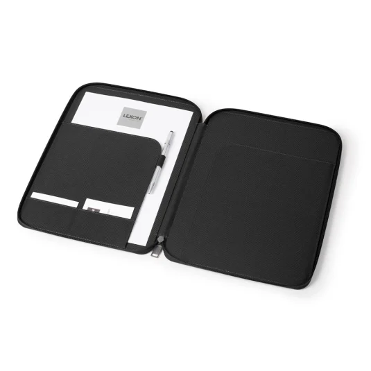 Elegante Mappe aus Polyester mit Reissverschluss, Fach für A4-Dokumente, Stiftehalter und 2 kleinen Fächern für Visitenkarten