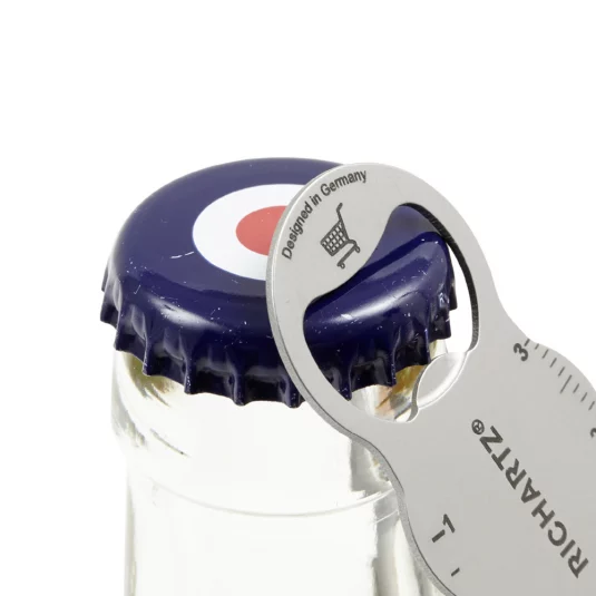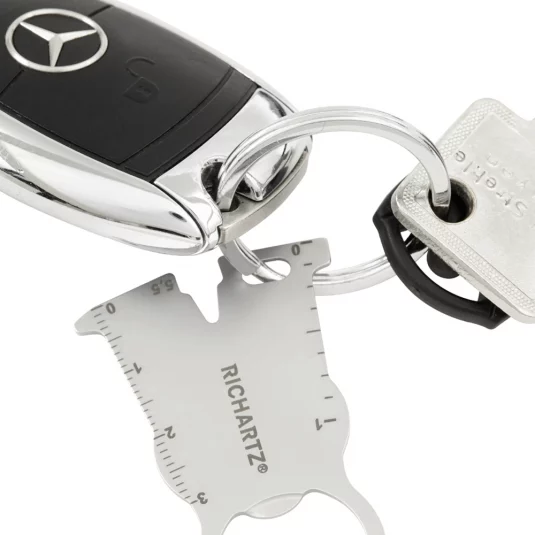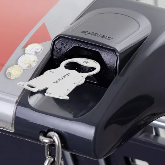 Einkaufswagenlöser für den Schlüsselbund aus rostfreiem Edelstahl, mit weiteren praktischen Funktionen; Flaschenöffner, Zentimetermass, Schraubendreher und Sechskantschlüssel