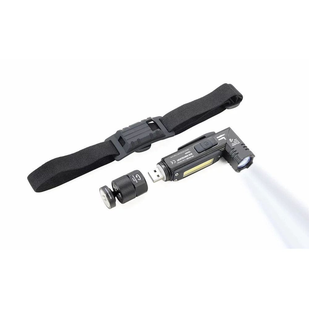 Multifunktionale Knicklampe (bis zu 90°) aus Aluminium und Kunststoff, mit 5 Lichtmodi (weisses Arbeitslicht, rotes Licht, schnell blinkendes rotes Licht, weisses LED-Licht und seitliches COB-LED Licht), weiteren praktischen Tools wie Magnethalterung und Gürtelclip - zudem dank elastischem Band auch als Stirnlicht verwendbar, spritzwassergeschützt nach IPX4, wiederaufladbar über integrierten USB-Stecker