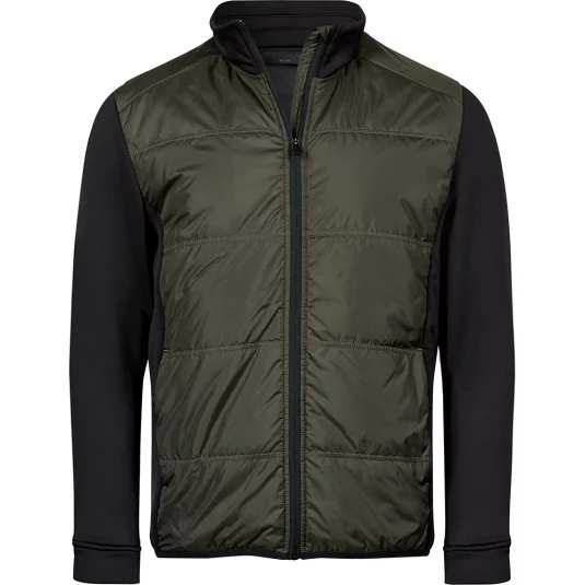 Hochwertige, leicht tailliert geschnittene Herren Hybridjacke mit gestepptem Körperteil. Die moderne Herrenjacke hat elastische Seiteneinsätze und Ärmel, zwei versteckte Fronttaschen mit Reissverschluss, eine Innentasche, ein elastisches Formband am unteren Saum, einem Stehkragen sowie SBS-Reissverschlüsse.