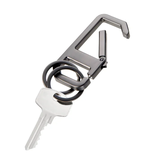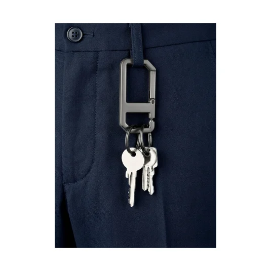 2-in-1 Schlüsselanhänger und Karabiner aus Metall mit praktischem Klick‑Verschluss, ausgestattet mit zwei Schlüsselringen und einer durchdachten Trennung der Funktionen: Der stabile Karabiner ermöglicht ein schnelles und zuverlässiges Befestigen, während die separat gekoppelte Einheit mit zwei Schlüsselringen für Ordnung sorgt, dank des cleveren Kugel‑Verschlusses lassen sich einzelne Schlüssel jederzeit mühelos ein‑ und ausklicken