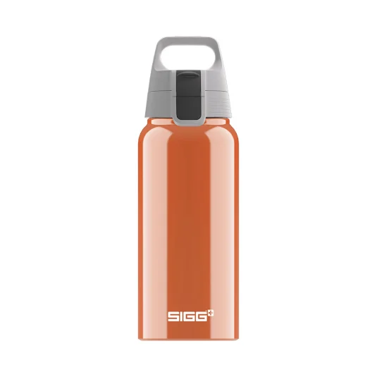 Swiss Made - die leichte, stylische Flasche aus hochwertigem, langlebigem und 100 % rezykliertem Aluminium, mit auslaufsicherem ONE Top-Deckel (Ein-Hand-Bedienung), auch für kohlensäurehaltige Getränke geeignet, leicht zu tragen und einfach zu reinigen, Inhalt 0,6 l