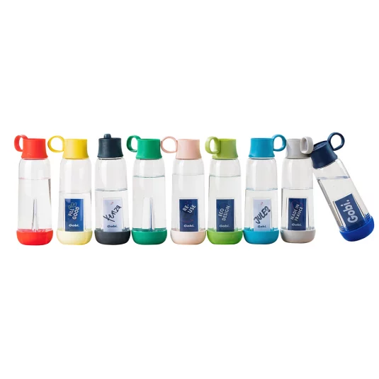 Leichte Flasche aus Tritan (BPA-frei) in originellem Design, hergestellt in Frankreich, mit praktischem Griff und originellem Einsatz für die Individualisierung in der Flasche sowie auf dem Deckel, spülmaschinenfest und geruchsfrei, Inhalt 4,6 dl