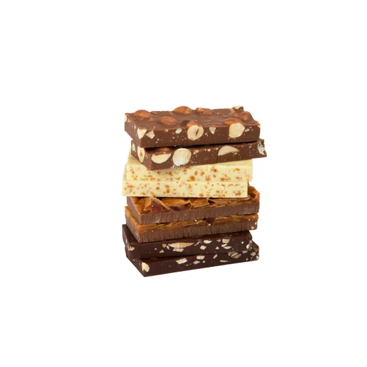 Edle handgeschöpfte Hausschokolade mit verschiedenen knackigen Nüssen umhüllt mit Milchschokolade, Inhalt 150 g, Haltbarkeit ca.