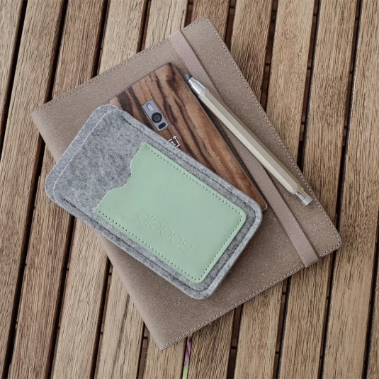 Schutz vor Kratzern - Handyschutzhülle aus Wollfilz/Echtleder, damit Ihr Handy wie neu bleibt Auch erhältlich in rezykliertem Filz/Kunstleder: Art.