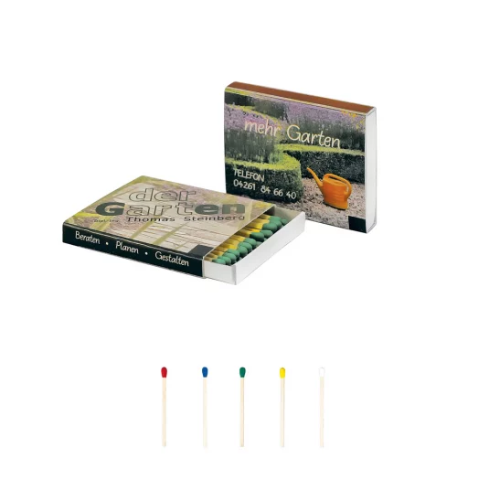 Flache Zündholzschachtel mit 25 naturfarbenen Streichhölzern, umweltfreundlich (ohne Schwefel und Schwermetalle), vollumfänglich biologisch abbaubar
