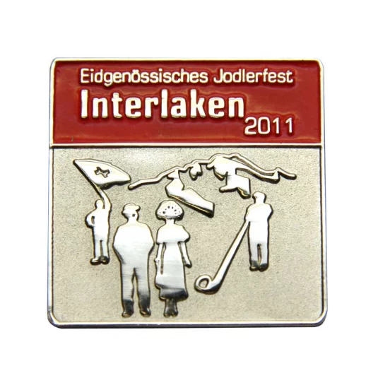 Edler Anstecker aus Metall, emailliert oder gedruckt, mit Relief- oder Farbdesign umsetzbar, kann mit Schmuck- oder Schmetterlingsverschluss geliefert werden, Form, Design und Grösse nach Wunsch, Mindestbestellmenge 100 Stück