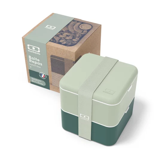 Die Mahlzeit auf zwei Etagen!Quadratische Lunchbox aus Kunststoff mit antibakteriellen Eigenschaften und zwei Etagen für das einfache Verstauen einer ausgewogenen Mahlzeit, hergestellt in Frankreich