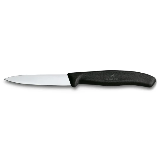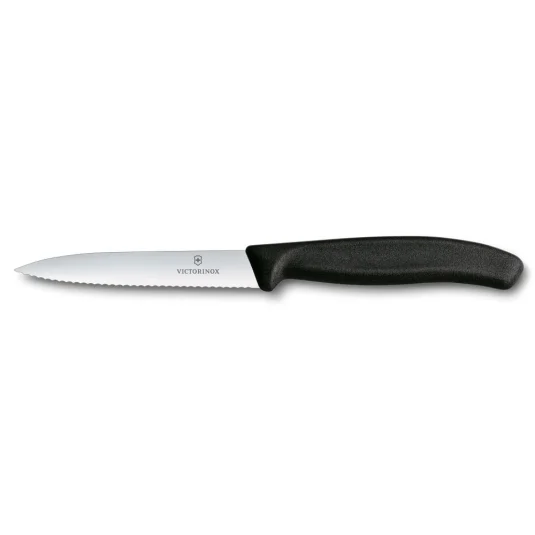 Swiss Made – 3-teiliges Küchen-Set, bestehend aus 1 Iota-Sparschäler mit gezackter Klinge, 1 Gemüsemesser mit geradem Schliff und 1 Gemüsemesser mit Wellenschliff – alle drei aus rostfreiem Stahl mit ergonomischem Griff aus robustem Kunststoff, spülmaschinenfest