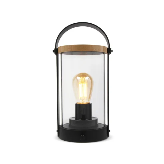 Stilvolle, wiederaufladbare Laterne aus Glas und Bambus, mit Touch-Dimmer, wird mit UBS-C-Kabel geliefert