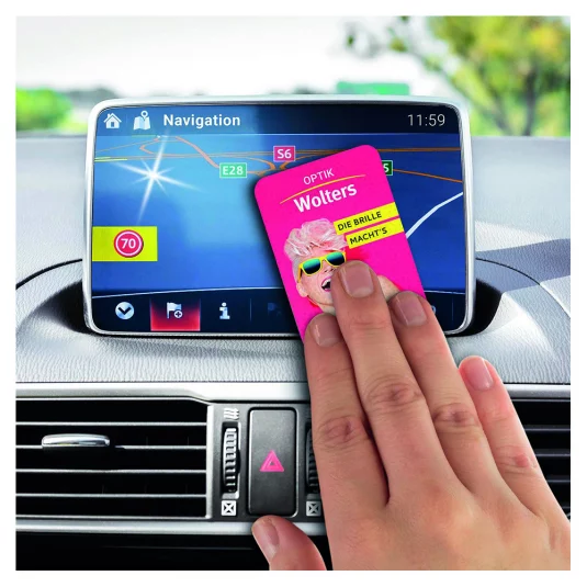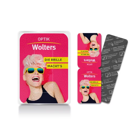Handliches Reinigungstuch im Taschenformat für unterwegs!