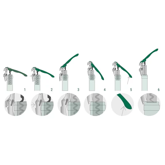 Professioneller Flaschenöffner Made in Italy, mit robuster Fünfdrehspirale aus Teflon und Messerklinge aus Edelstahl (nach Wahl glatt oder gezackt)