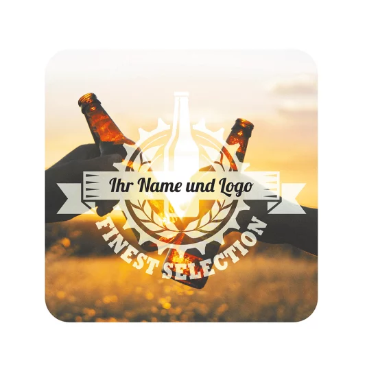 Bierdeckel aus nachhaltiger Produktion (EU) - beidseitig hochweisser Karton (1,4 mm CC TOP Prime), gefertigt aus 60 % Primärstoff und 40 % Sekundärstoff