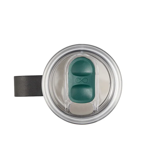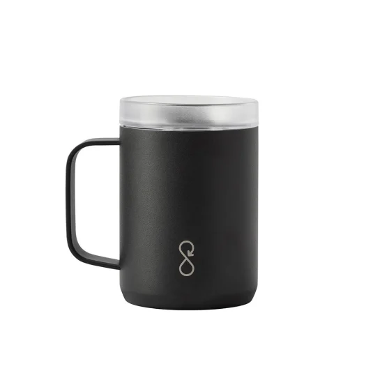 Stop Ocean Plastic! Doppelwandiger, vakuumisolierter Travel Mug aus 90% rezykliertem Edelstahl, hält Getränke bis zu 4 Stunden warm oder bis zu 10 Stunden kühl, mit ergonomischem Griff und abnehmbarem Deckel aus rezykliertem Kunststoff (67 %) mit Schiebeverschluss, Inhalt 0,35 l