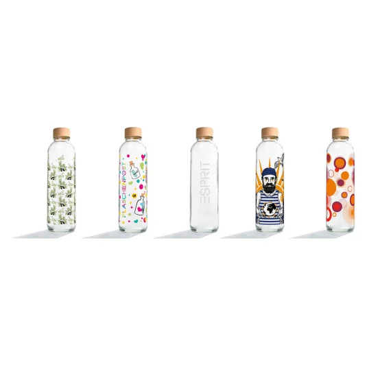 Natürlich Glas! Funktionale, stylische Flasche aus rezykliertem (60%), robustem Glas, mit auslaufsicherem Drehverschluss aus biologisch abbaubaren Holzfasern und Polypropylen (BPA-frei), auch für Kohlensäure geeignet, spülmaschinenfest und hitzebeständig, Inhalt 0,7 l