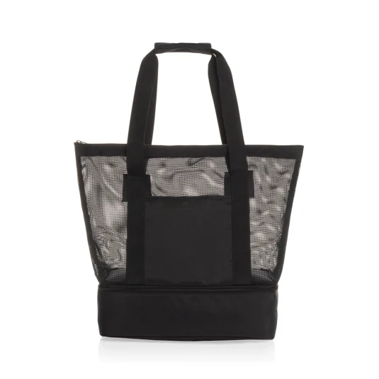 Stilvolle Kühltasche aus 100% rezykliertem rPET-Material, verfügt über zwei Tragegriffe mit Klettverschluss und ein separates Kühlfach mit silbergrauem PEVA-Futter