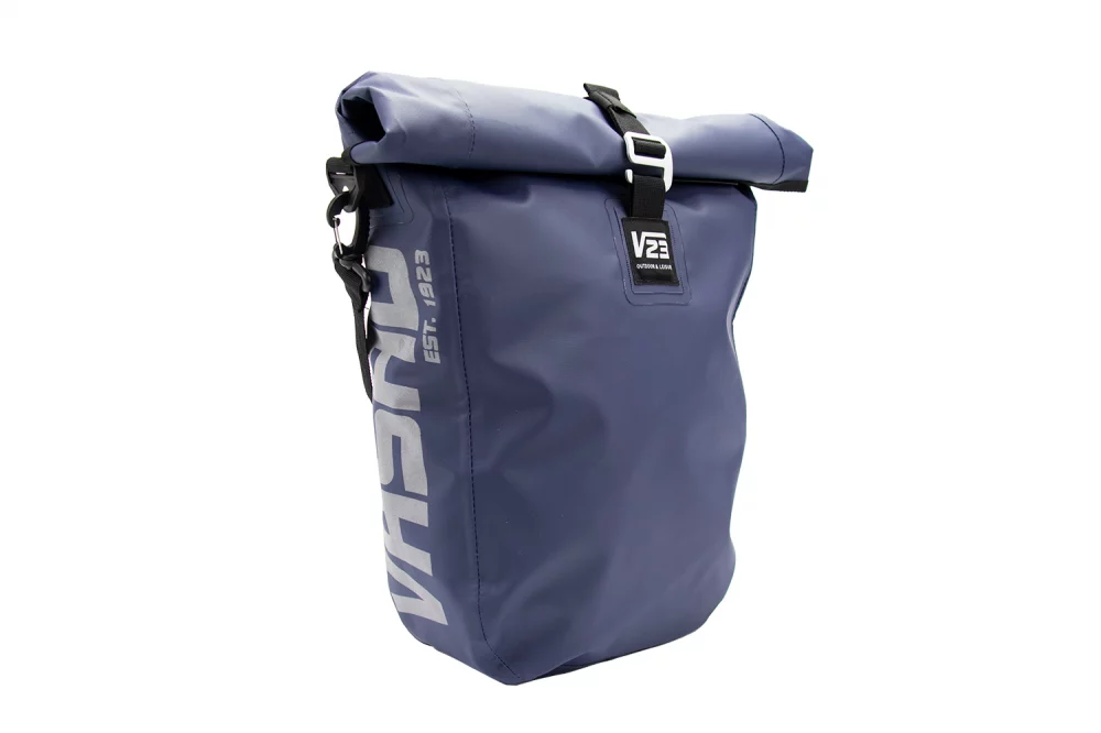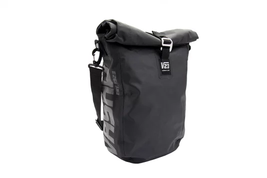 Wasserdichte Fahrradtasche aus robuster LKW-Plane (Tarpaulin), mit Futterstoff aus rPET, verschweissten Nähten, Rolltop-Verschluss, gepolstertem Fach für Laptop und reflektierendem Aufdruck für bessere Sichtbarkeit, Inhalt 20 l