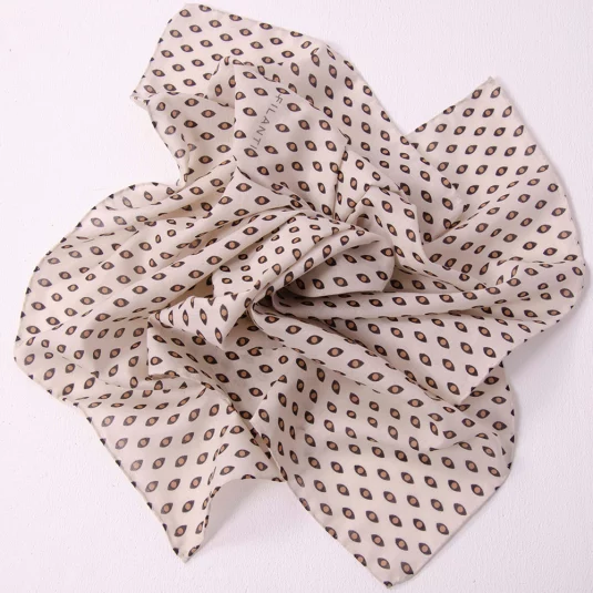 Schal aus GOTS zertifizierter Bio-Baumwolle mit All Over-Aufdruck, Längskanten mit Plattsausm oder Abschluss mit Fransen, nach Ihren Wünschen umgesetzt.