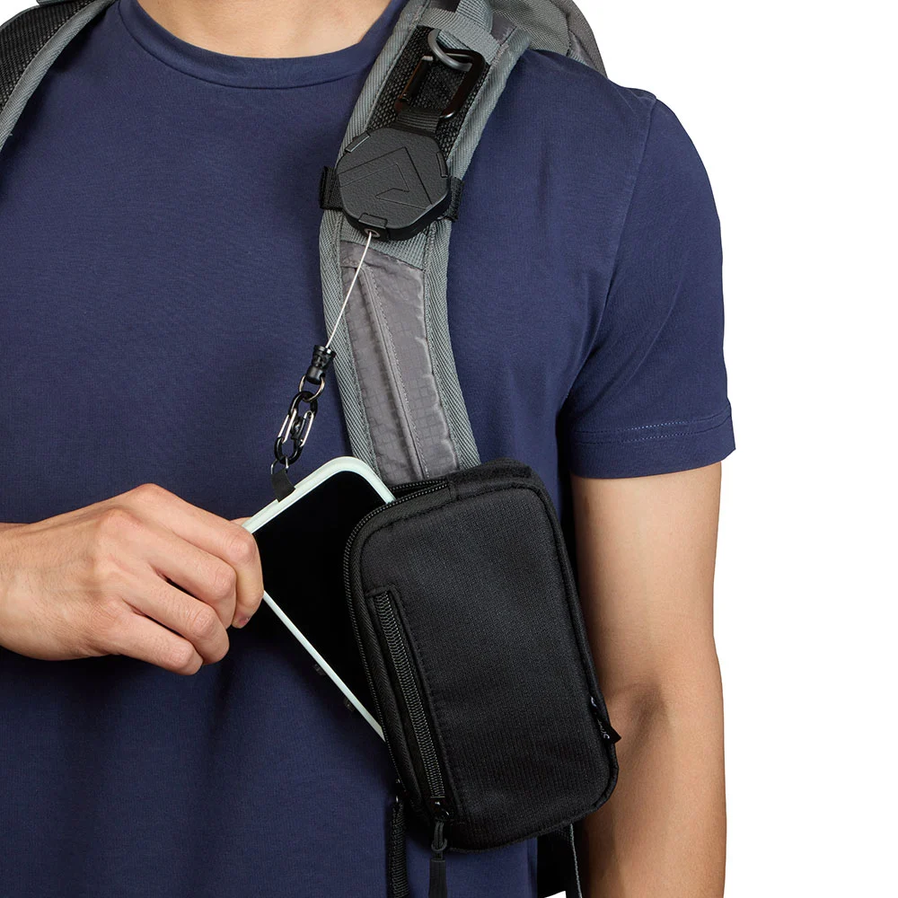 Connect your Smartphone - schneller und sicherer Zugriff während jedem Outdoor-Abenteuer! Set bestehend aus einem Winter Bag und einem Lock. Smartphone Halterung aus reissfestem Material mit einem Lock-System, einem Karabiner und Strap zur Befestigung an jedem Rucksack. Mit dem Batch kann jedes Smartphone mit einem Cover befestigt werden. Das Drahtseil mit einer Länge von 80 cm kann ein Gewicht von ca. 2 kg halten.