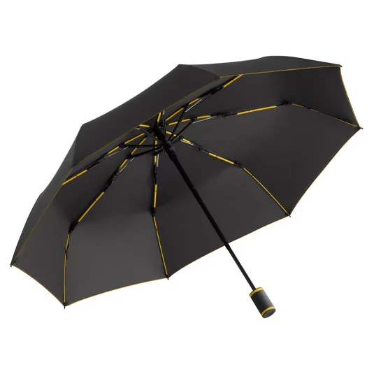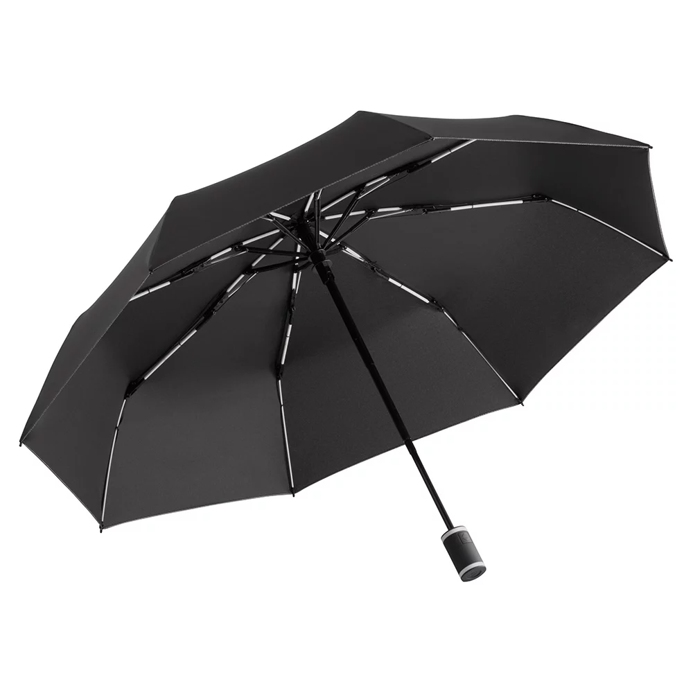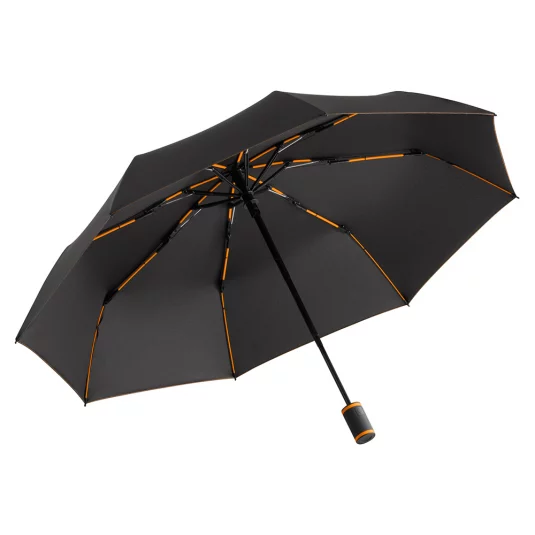 Stylischer Doppelautomatik-Taschenschirm, mit hochwertigem Fiberglasgestell, aus umweltfreundlichem, zertifiziertem Polyester-Pongee (OEKO-TEX®) und wassersparend gefärbtem waterSAVE® Bezugsmaterial aus rezyklierten Kunststoffen, Windproof-System und Druckknopf für automatisches Öffnen und Schliessen, mit Softtouch-Griff, verpackt in passender Hülle