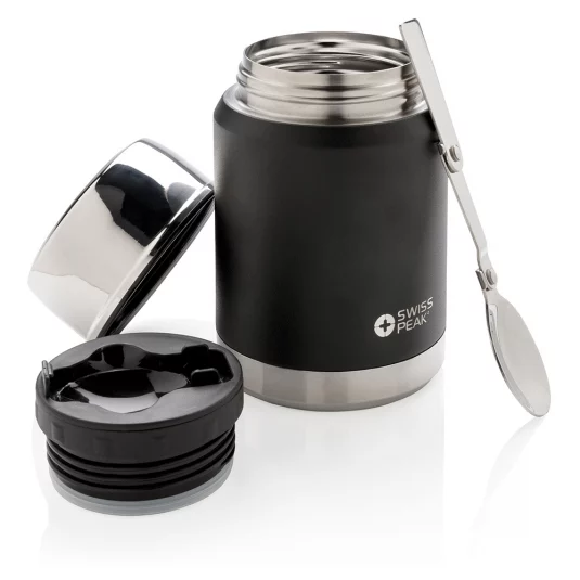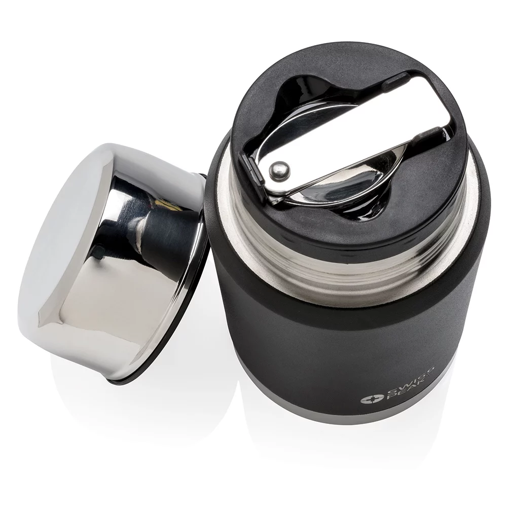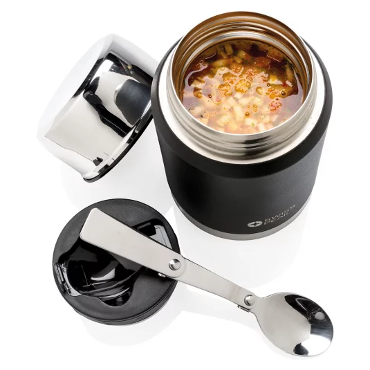Langlebiger Thermo Food-Jar (BPA-frei) aus 18/8 Edelstahl, mit doppelwandiger Vakuumisolierung, welcher den Inhalt auslaufsicher bis zu 8 Stunden warm - oder bis zu 24 Stunden kühl hält, Innenseite mit Kupfer-, sowie Aussenseite mit robuster Pulverbeschichtung, inklusive ausklappbarem Löffel aus 18/8 Edelstahl, Inhalt 0,5 l