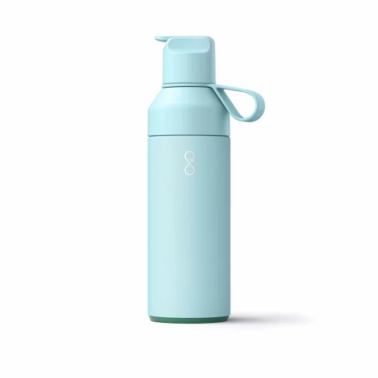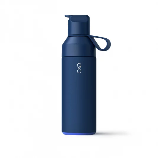 Stop Ocean Plastic - die sportliche Version für kalte Getränke! Kultige, nachhaltige Wasserflasche aus rostfreiem Edelstahl (65% rezyklierte Materialien inklusive 90% rezykliertem Edelstahl), mit praktischem "Ein-Hand-Verschluss", doppelwandig und vakuum-isoliert, hält Getränke bis zu 18 Stunden kühl, mit zwei Öffnungen für einfacheres Einfüllen und Auswaschen, sowie einem Trinkhalm aus Silikon, auslaufsicher und mit praktischer Trageschleife, 100% spülmaschinengeeignet, geliefert im Einzelkarton (100% rezykliertes Material), Inhalt 0,5 l