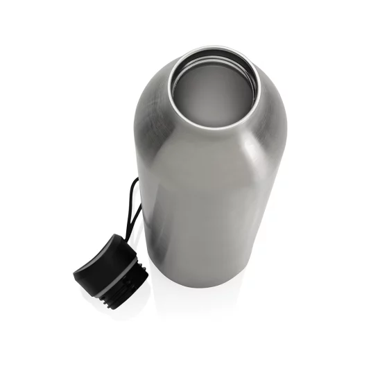 Doppelwandige Vakuumflasche aus rezykliertem Edelstahl, hält Getränke bis zu 20 Stunden kühl oder bis zu 10 Stunden warm, geliefert in Kartonbox, welche als Telefonhalter, Stiftehalter oder sogar Blumentopf nachhaltig wiederverwendet werden kann