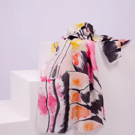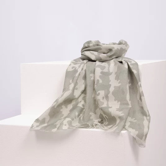 Foulard aus GOTS zertifizierter Bio-Baumwolle mit All Over-Aufdruck, Abschlüsse rouliert, nach Ihren Wünschen umgesetzt in verschiedenen Standardgrössen.