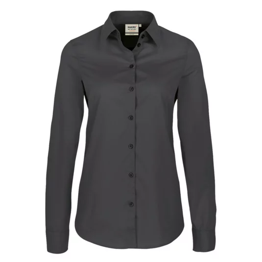 Besonders strapazierfähige Bluse mit leicht gerundetem Saum, Knopfleiste mit 4-Loch Knöpfen - über Kreuz vernäht und doppelt verknotet für extra festen Halt, Ersatzknopf, Doppelkappnaht an den Seitennähten, weitenverstellbare Manchetten.