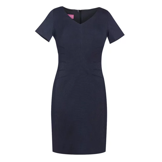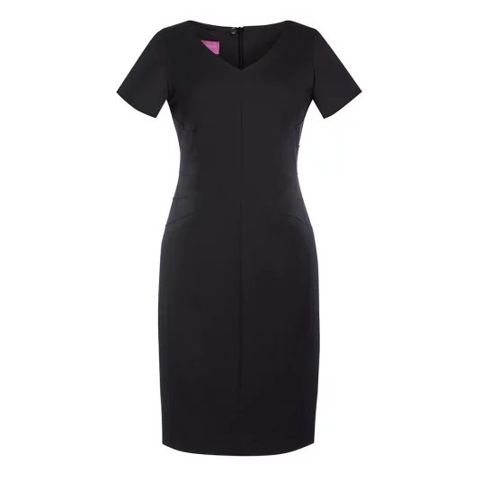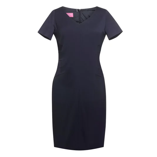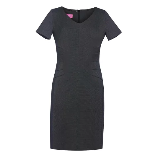 Klassiches Kurzamkleid mit V-Ausschnitt und raffinierten Taillenabnähern von der Seite, Gehschlitz in der hinteren Mitte, maschinenwaschbar.