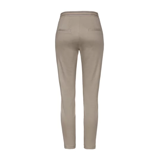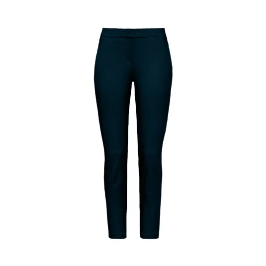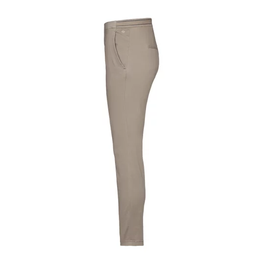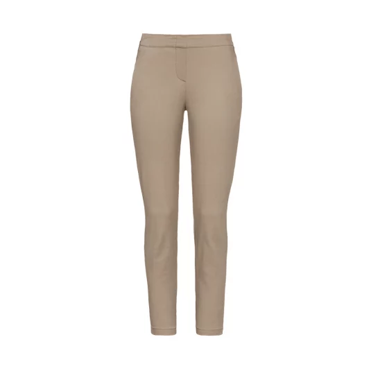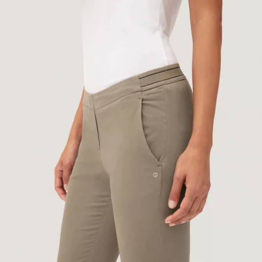 Sportliche, körpernah geschnittene 7/8-Stretch-Hose in Chino-Optik für Damen, mit zwei Eingrifftaschen, zwei optisch angedeuteten Paspel-Gesässtaschen und optisch angedeutetem Hosenschlitz.