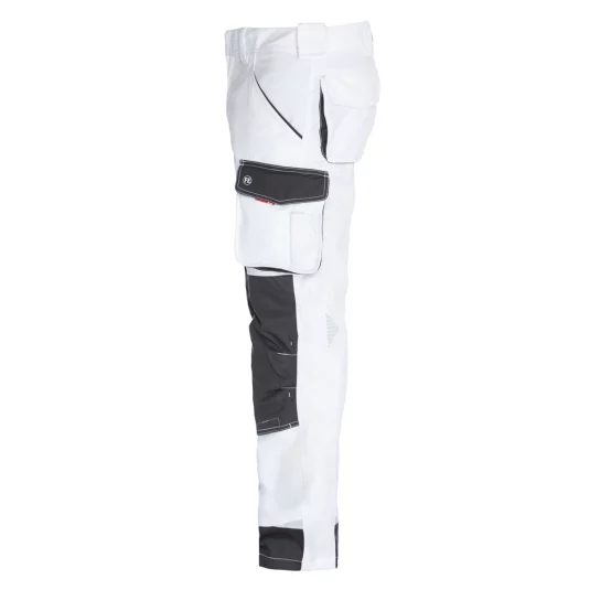 Arbeitshose mit ergonimisch geformten Knie, vielen funktionellen Taschen, u. a. Schenkeltasche mit Reissverschluss, zwei Einstellmöglichkeiten für Knieschutzkissen, Knie und unterer Saum mit Cordura verstärkt, Schenkeltasche mit freihängendem Boden und Zollstocktasche, Schlaufe mit D-Ring, für Industrieäsche geeignet, in kurzer- und extra Schrittlänge erhältlich.