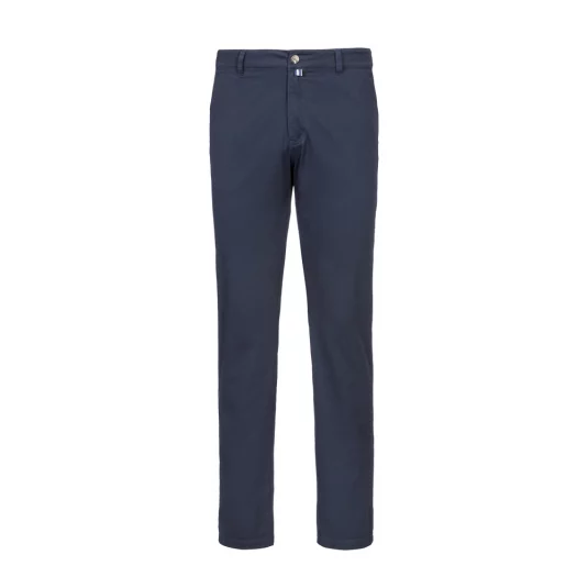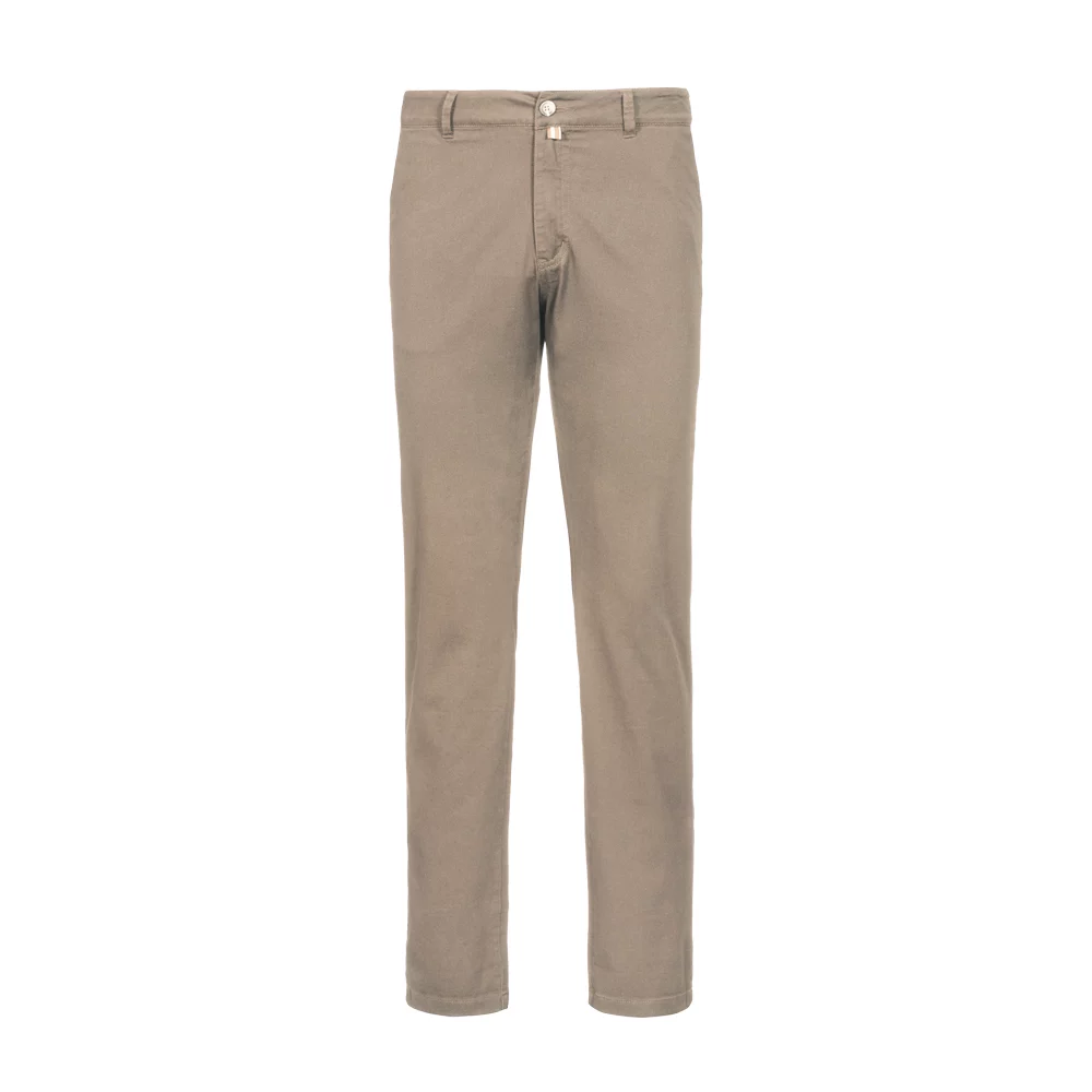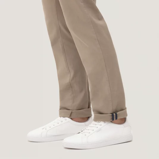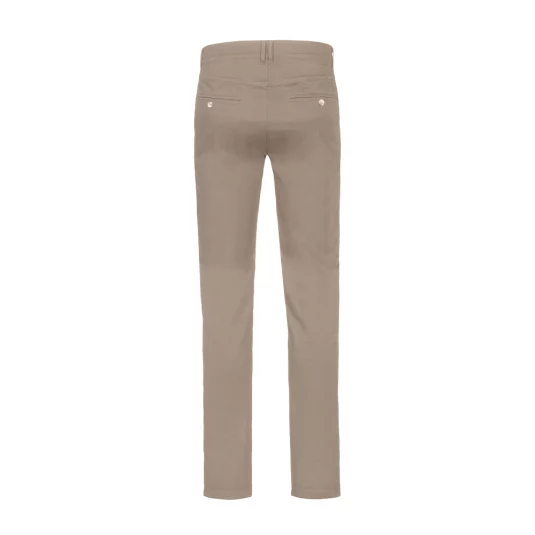 Sportlich, leger geschnittene Stretch-Chinohose mit zwei Eingrifftaschen, zwei Paspelgesäßtaschen mit Knopf, Gürtelschlaufen und Reissverschluss von YKK®.