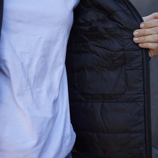 Eine modern geschnittene, wattierte Softshell Jacke.