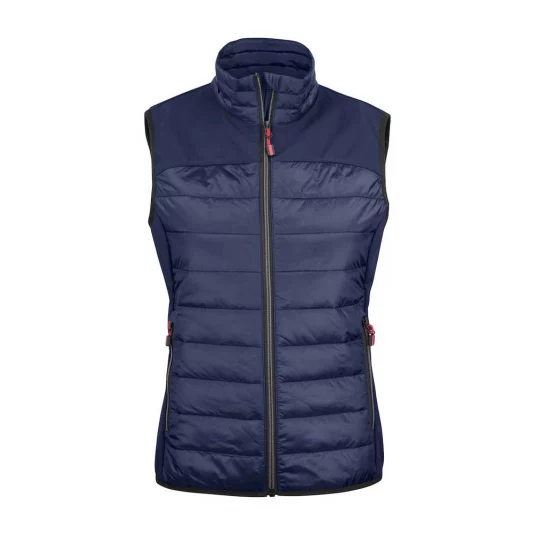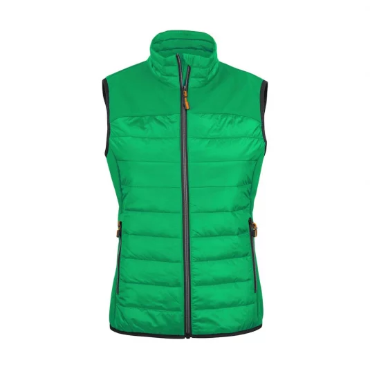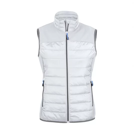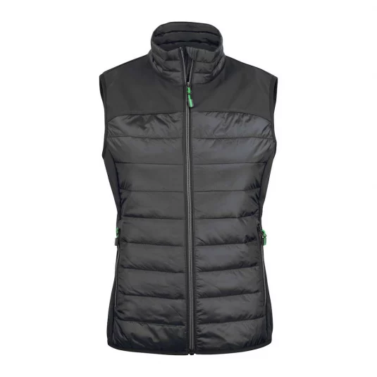 Wattiertes Gilet gesteppt und mit Sofshell Einsätzen über der Schulter und an den Seiten. Zwei Aussentaschen mit Reissverschluss, Innen zwei Beuteltaschen Meshgefüttert. Elastisches Band als Abschluss am Saum. Farbauswahl, Reissverschlüsse und Zipper Puller sind passend zu allen Essentials Artikel.
