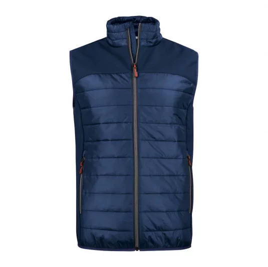 Wattiertes Gilet gesteppt und mit Sofshell Einsätzen über der Schulter und an den Seiten.