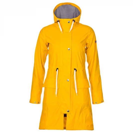 Klassische Regenjacke mit 2 Aussentaschen, abgedecktem Reissverschluss und fixer Kapuze.