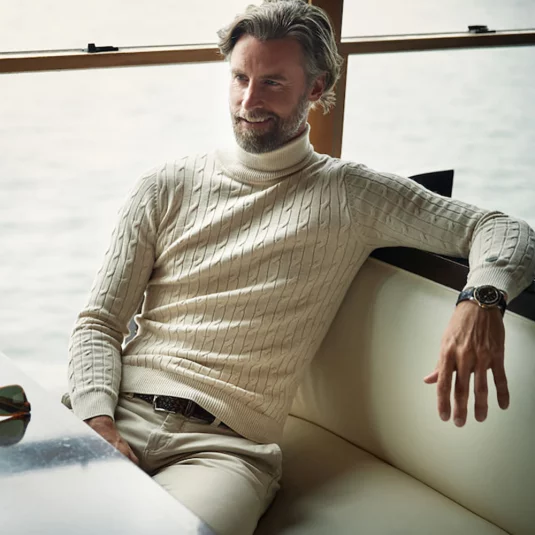 Pullover mit Rundhalsausschnitt aus weichem Baumwollgarn, gestrickt mit klassischem Zopfmuster.
