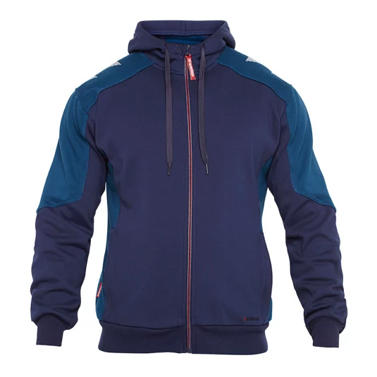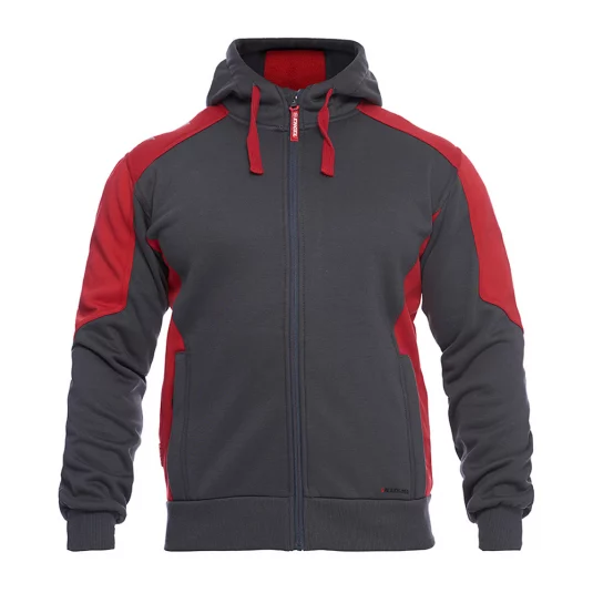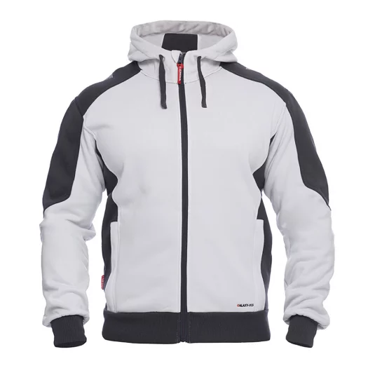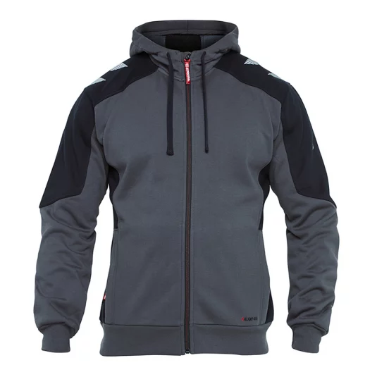 Sweat Cardigan mit weichem Fleece auf der Innenseite, grosse Einschubtaschen mit Reissverschluss, Strickbündchen an Bund und Ärmel, Kapuze mit Kordel, Refelxapplikation auf den Schultern.