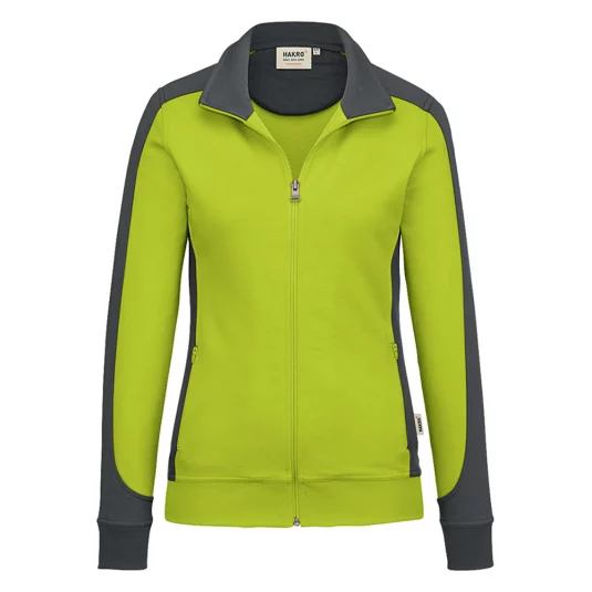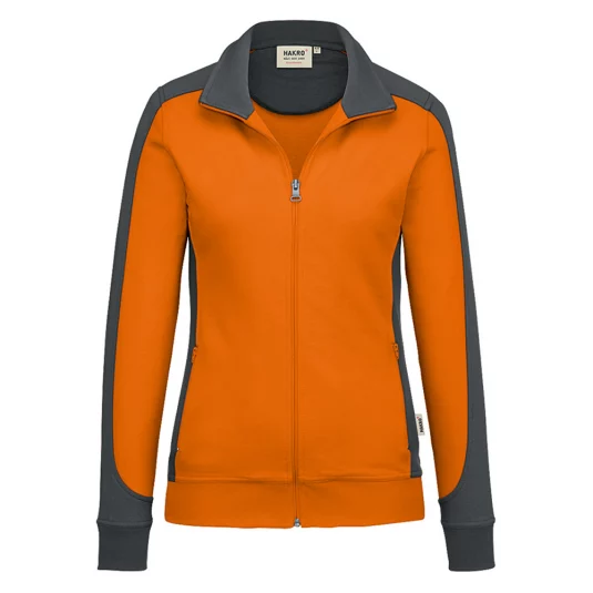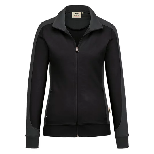 Besonders strapazierfähige Sweatjacke mit kontrastfarbigen Einsätzen an den Seiten, den Schultern und Ärmeln, formstabilen Bündchen mit Lycra-Anteil, nicht angerauhter Innenseite, (French-Terry), Nackenband, hochwertigem Frontreissverschluss und seitlichen Einschubtaschen mit Reissverschluss.