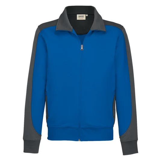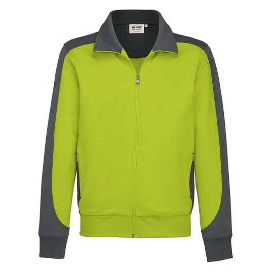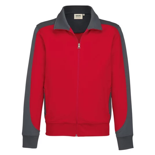 Besonders strapazierfähige Sweatjacke mit kontrastfarbigen Einsätzen an den Seiten, den Schultern und Ärmeln, formstabilen Bündchen mit Lycra-Anteil, nicht angerauhter Innenseite, (French-Terry), Nackenband, hochwertigem Frontreissverschluss und seitlichen Einschubtaschen mit Reissverschluss.